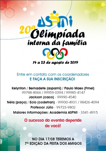 Neste ano, teremos a 20ª Edição da Olimpíada Interna da Família ASPMI.